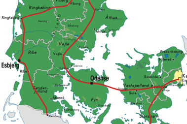 Door een glooiend landschap rijd je verder naar Kolding, bekend van het Kasteel Kolding. Vervolgens rijd je de brug naar het eiland Fyn over en bereik je al snel Odense. Dit is één van de oudste steden in Noord-Europa. Het is de Bisschopzetel sinds 1020, Knut de Heilige werd in 1086 in de St. Albani kerk vermoord. Odense werd daardoor een pelgrimsoord met verschillende kerken en kloosters. De binnenstad heeft nog een aantal typisch Deense vakwerkhuizen. De stad is echter het meest bekend als de woonplaats van de Deense schrijver Hans Christian Andersen. Overnachting in Odense.