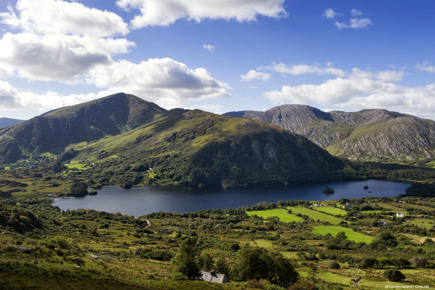 Vanmorgen rijd je richting Kenmare en Killarney. De weg onthult het hart van de Ierse wildernis, met een steeds veranderend landschap dat je begroet bij elke bocht. Eenmaal in Kenmare, kun je een rustige wandeling maken langs de kleurrijke gevels en de lokale markt bezoeken voordat je je tocht voortzet naar Molls Gap. Hier, te midden van de glooiende heuvels en ruige bergen, voel je de serene schoonheid van Ierland.