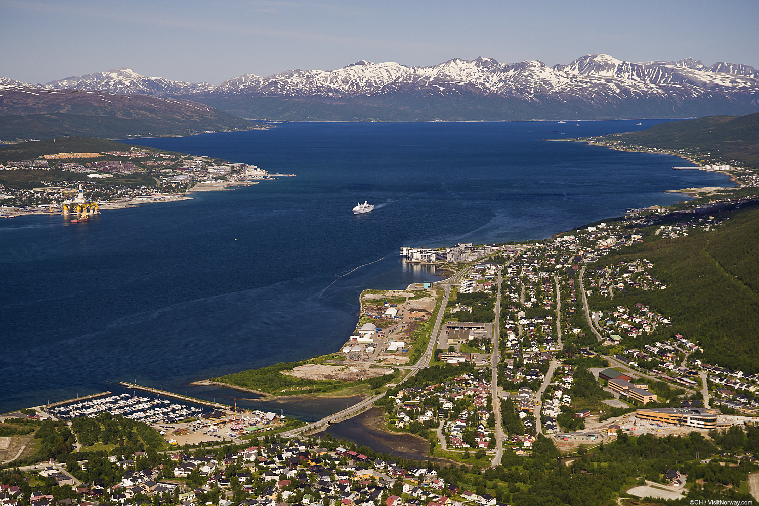 Vervolg de Europaweg 6 noordwaarts, langs de Balfjord en je komt in Tromsö. Tromsö is de grootste Noorse stad ten noorden van de poolcirkel en wordt ook wel ‘Parijs van het Noorden’ genoemd. Tromsö is in de zomermaanden een geweldige plaats om te vertoeven, zeker om te kunnen genieten van de middernachtzon en het bruisende uitgaansleven. Bezoek zeker de Arctische kathedraal en Polaria. Overnachting in Tromsö.