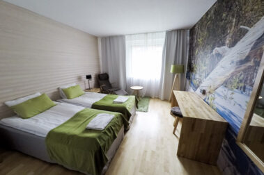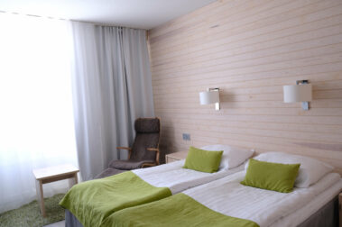 Faciliteiten: Hotel Ivalo biedt zijn gasten een lobbybar met open haard, een gezellig restaurant en de Lapin Tupa bar die open is op vrijdag- en zaterdagvond. Daarnaast beschikt het hotel over 3 sauna’s, een sauna-zwembad en 2 bubbelbaden waar je heerlijk kan relaxen met uitzicht op de natuur. Er is een speelruimte voor kinderen en een internet computer en draadloos internet in de lobby. Bij een verblijf in Hotel Ivalo kan je gratis gebruik maken van langlaufski’s, sneeuwschoenen, ijsschaatsen en sledes volgens beschikbaarheid.