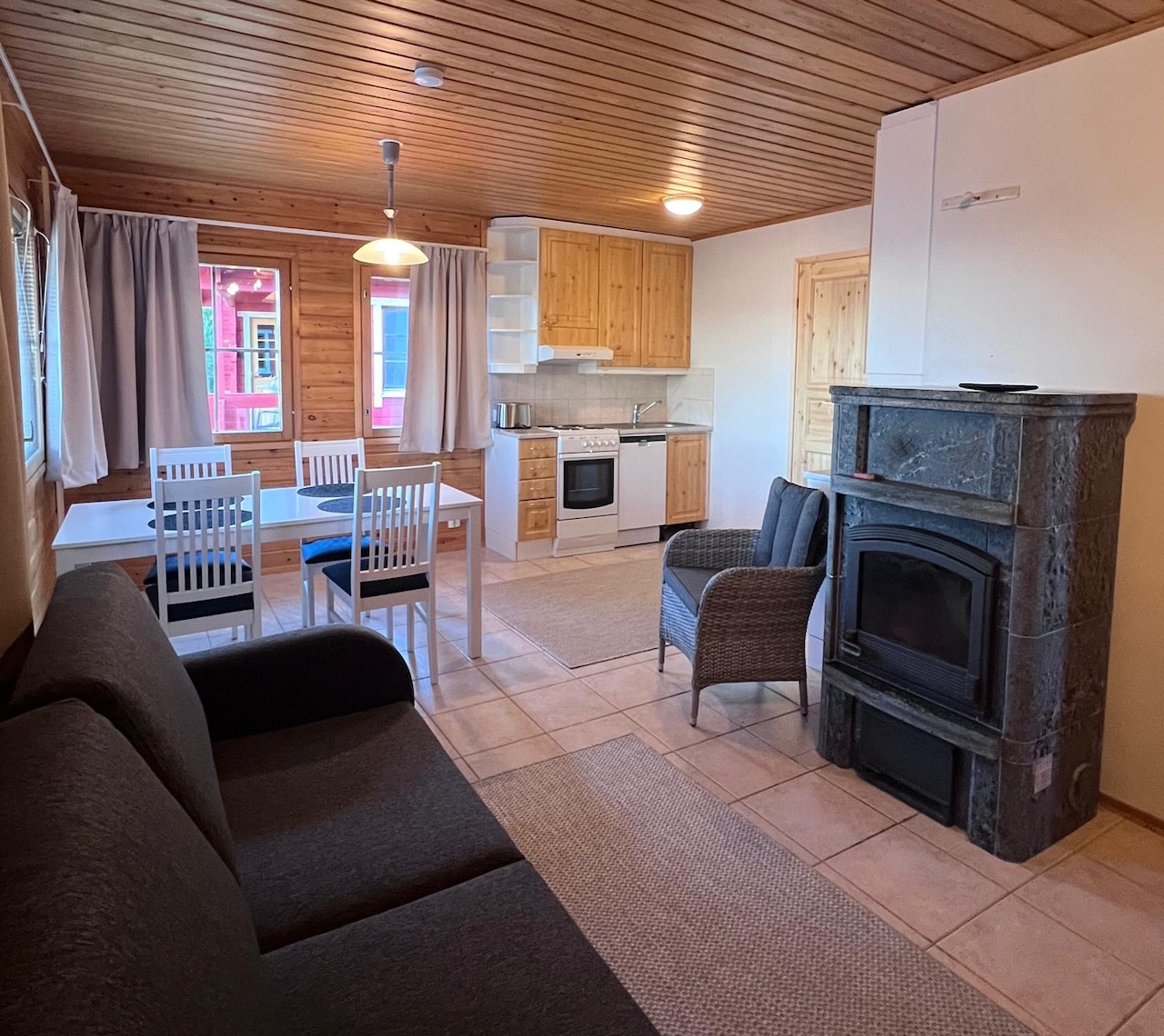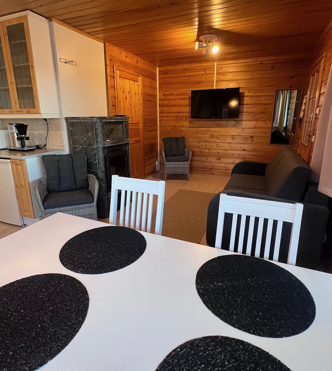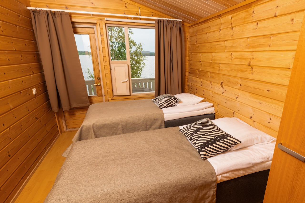 Type A: Vuopaja Cottage, 40m², 4 huisjes voor maximum 2 volwassenen + 2 kinderen -12j. met 1 slaapkamer en sofabed in de woonruimte.